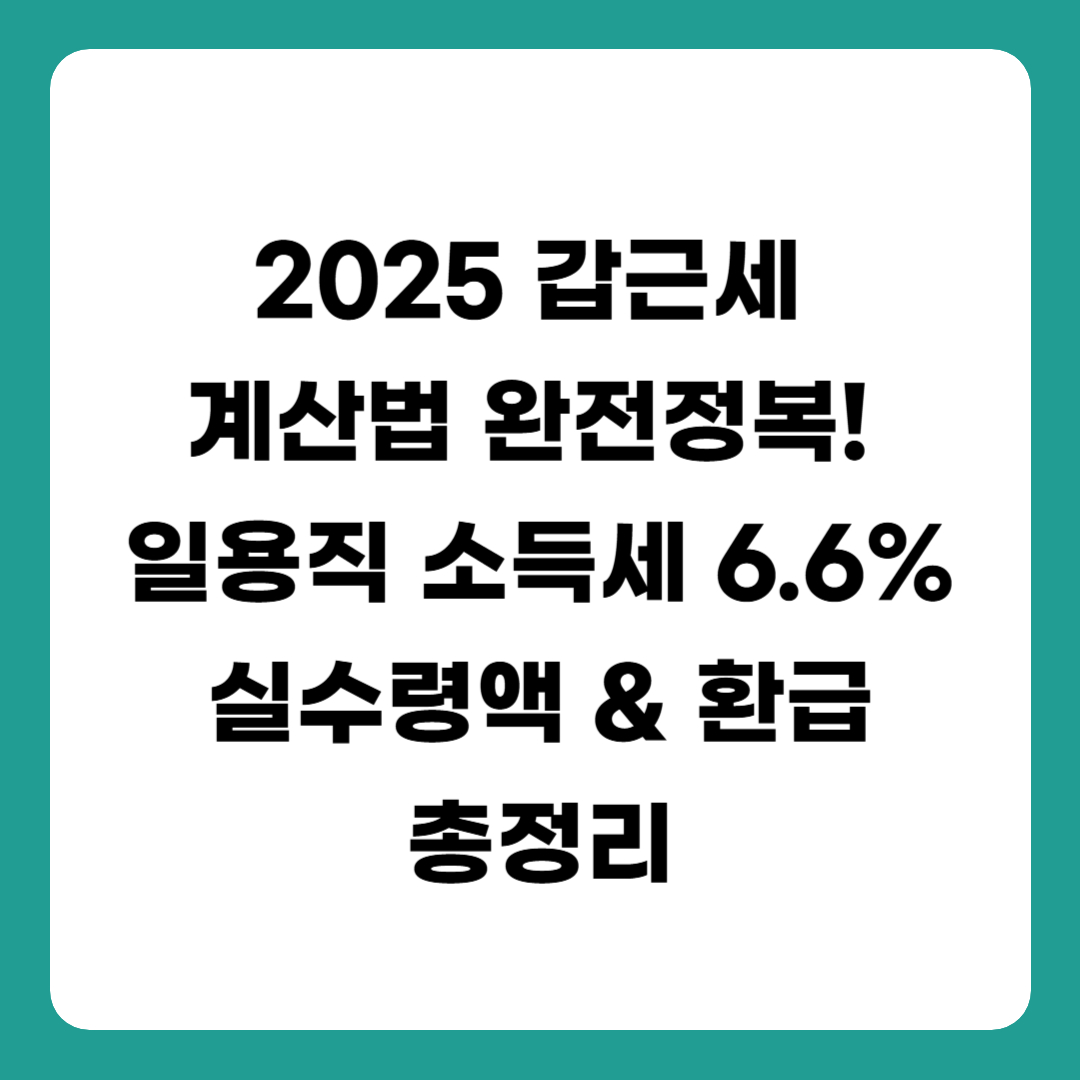 [2025년 최신] 갑근세 계산법 완전정복! 일용직 소득세 6.6% 실수령액 & 환급 조건까지