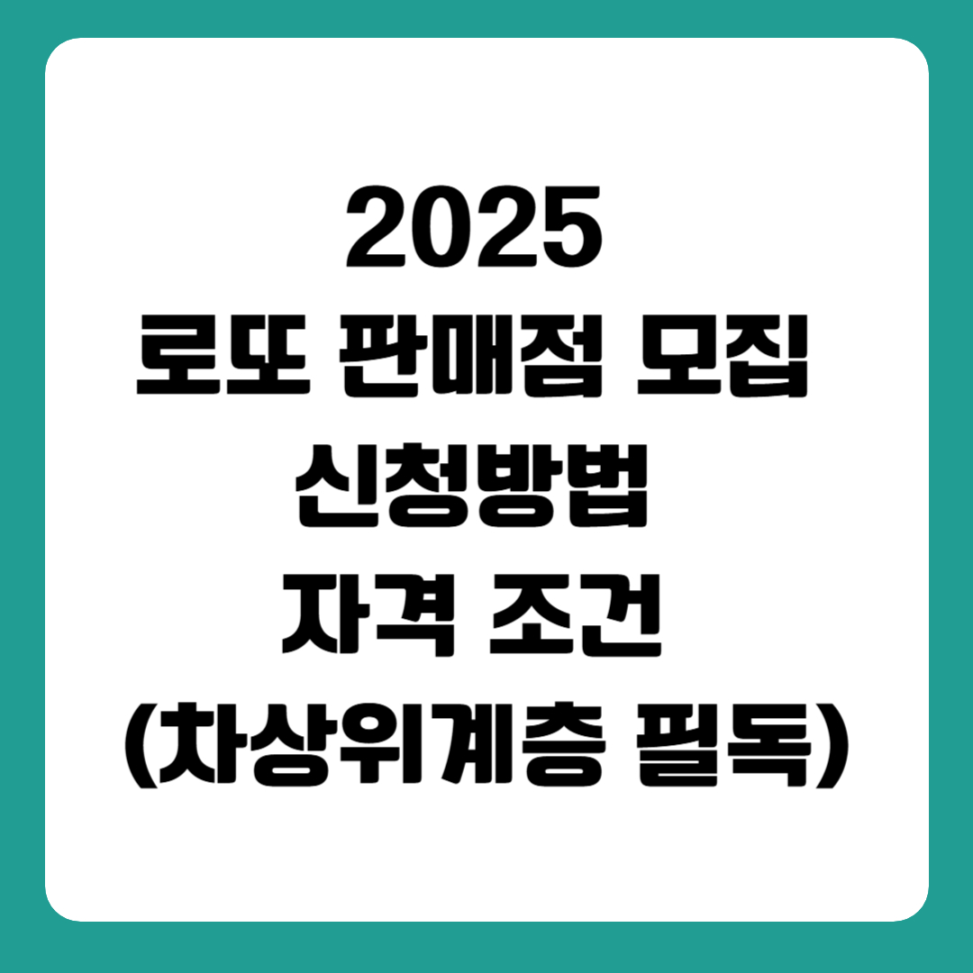 2025 로또 판매점 신규 모집 시작! 로또 판매점 신청 총정리 (차상위계층 필독)